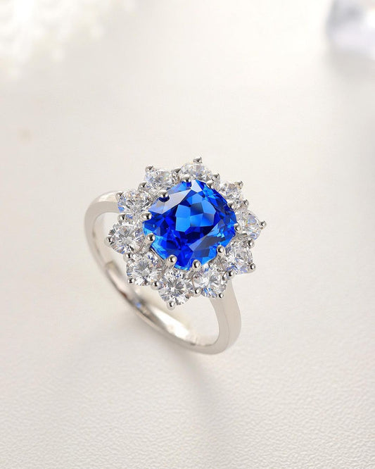 3.6CT Blue Cushion Cut Halo Ring | Flower Look Bridal Jewelry | Gift For Women | Statement Ring For Her