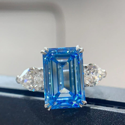 3.8CT Blue Emerald Cut Solitaire Ring | Classic Ring For Women | Fashionable Ring | Gift For Wife