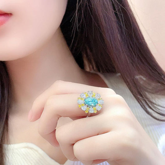 3.8CT Blue Oval Cut Cluster Ring | Party Wear Ring For Women | Designer Ring | Fashionable Ring
