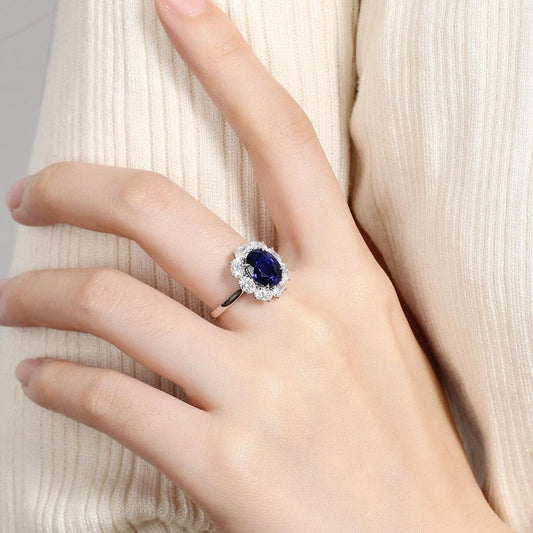 3.8CT Blue Oval Cut Halo Ring | Women's Fine Jewelry | Modern Bridal Wedding Ring | Surprise Gifts