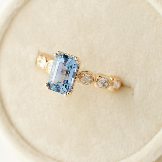 3.6CT Aquamarine Emerald Cut Solitaire Ring | Engagement Ring For Fiancee | Timeless Design | Thank You Gift Ring