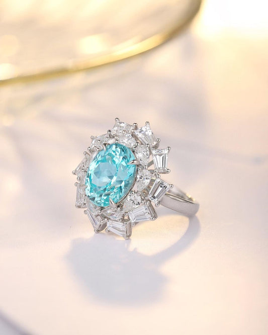 3.9CT Aquamarine Oval Cut Cluster Halo Ring | Special Occasion Ring For Her | Women's Fine Jewelry | Fashionable Ring
