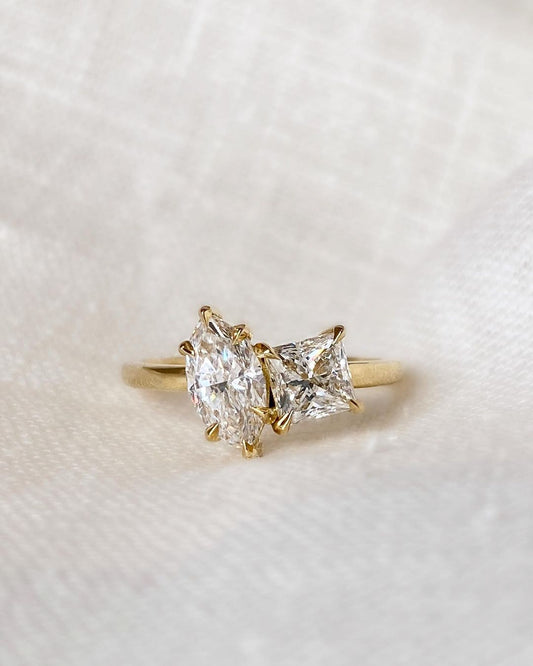 2.2CT White Marquise And Princess Cut Two Stone Ring | Birthday Gift Ring | Toi Et Moi Ring | Women Jewelry