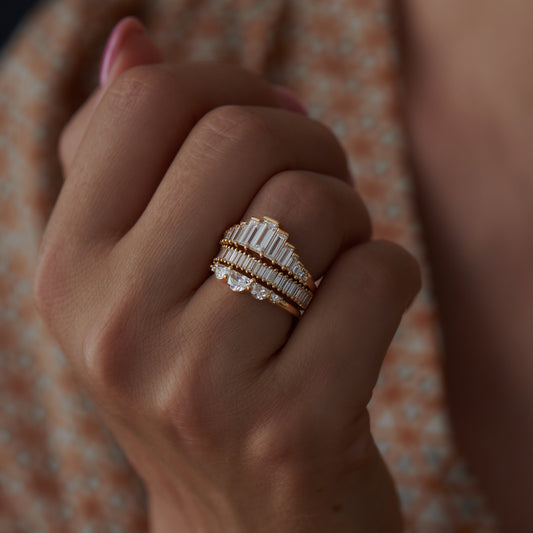 2.2Ct White Baguette Cut Bar Ring Set | Anniversary Gift Ring Set | Stacking Ring Set | Unique Ring Set