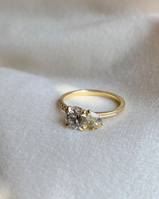 2.2CT White Round And Yellow Pear Cut Two Stone Ring | Birthday Gift Ring For Her | Toi Et Moi Ring | Elegant Ring