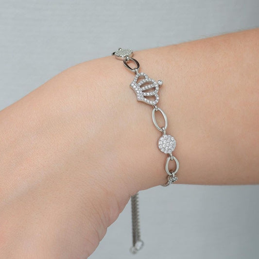 King Crown White Round Brilliant Cut Signity Diamond Pave Bracelet | Adjustable Bracelet For Girl | First Communication Gift For Her