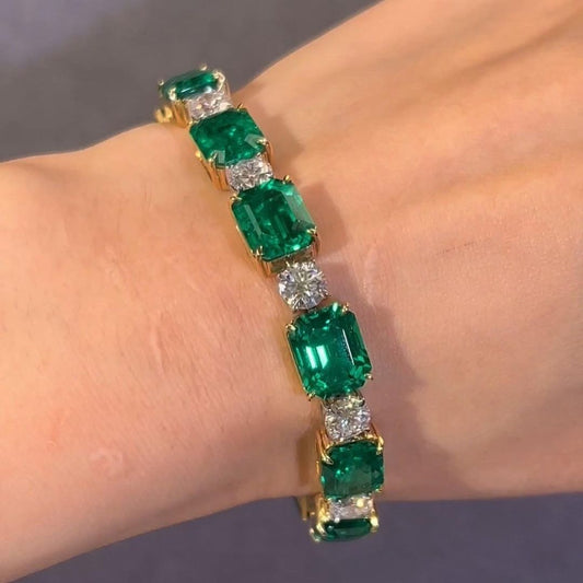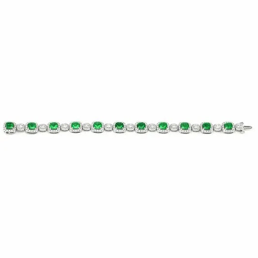Green Cushion And White Round Brilliant Cut Signity Diamond Halo Bracelet | Party Wear Bracelet For Women | Bridal Wedding Gift Bracelet