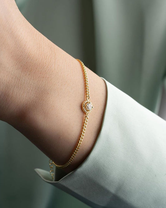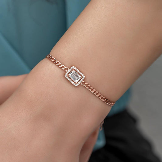 White Emerald Brilliant Cut Signity Diamond Halo Bracelet For Women | Chain Bracelet For Her | Everyday Wear Bracelet