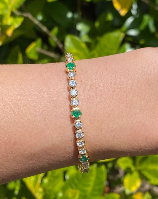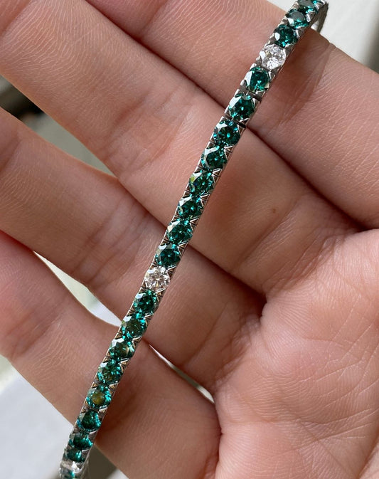 Green Emerald And White Round Brilliant Cut Signity Diamond Prong Set Tennis Bracelet For Her | Baby Shower Gift Tennis Bracelet | Fashion Jewelry