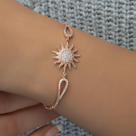 Sun Shape White Round Brilliant Cut Signity Diamond Cluster Bracelet | Engagement Gift Bracelet For Fiancee | Fashion Jewelry For Women