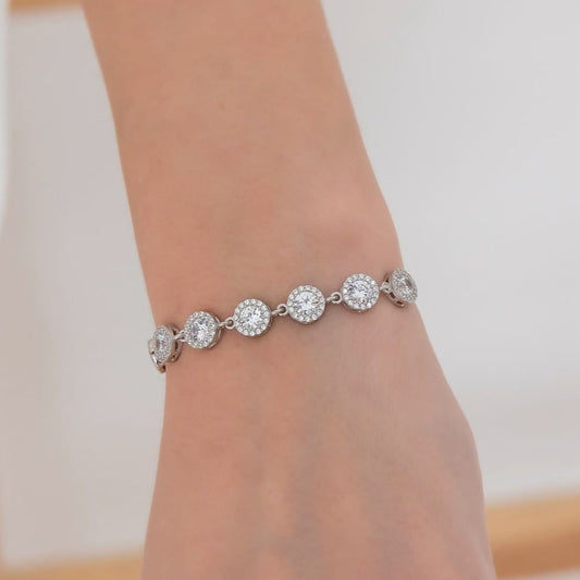 White Round Brilliant Cut Signity Diamond Halo Bracelet For Her | Adjustable Bracelet For Women | First Communication Gift