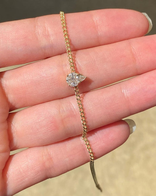 White Pear Brilliant Cut Signity Diamond Solitaire Bracelet | Curb Chain Bracelet | Delicate Solo Diamond Bracelet