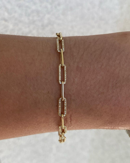 White Round Brilliant Cut Signity Diamond Prong Set Bracelet | Paper Clip Bracelet For Her | Everyday Wear Jewelry For Women