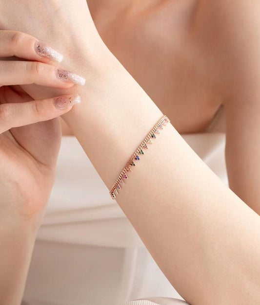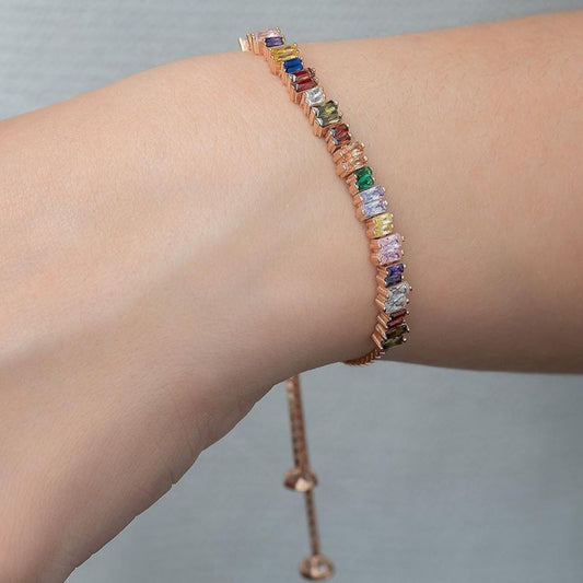 Multi Color Baguette Brilliant Cut Signity Diamond Prong Set Bracelet | Adjustable Bracelet For Her | Teenage Girl Gift Bracelet
