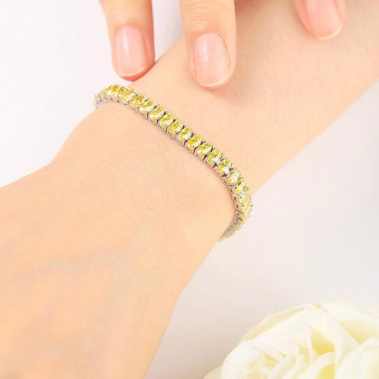 Canary Yellow Oval Brilliant Cut Signity Diamond Tennis Bracelet For Women | Prong Set Cubic Zirconia Diamond Tennis Bracelet | Birthday Gift For Her