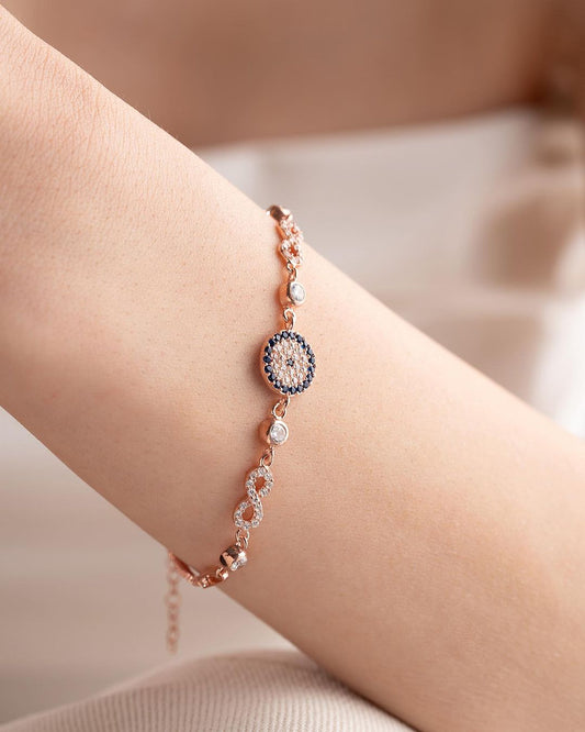 Blue And White Round Brilliant Cut Signity Diamond Cluster Bracelet For Women | Double Infinity Bracelet | Designer Bracelet For Her