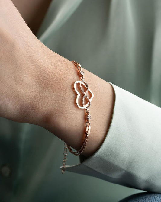 Heart Shape And Infinity White Round Brilliant Cut Signity Diamond Pave Bracelet | Anniversary Gift Bracelet For Wife | Party Wear Bracelet