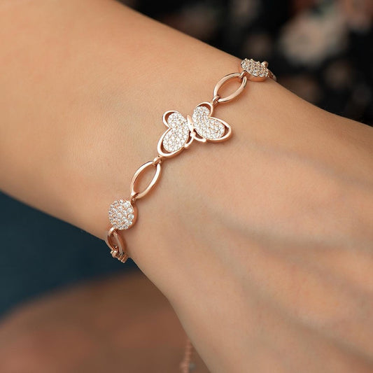 Butterfly Shape White Round Brilliant Cut Signity Diamond Cluster Bracelet | Adjustable Bracelet For Girl | Baby Shower Gift