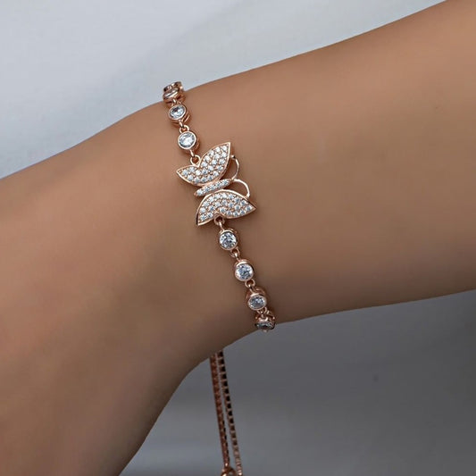Butterfly White Round Brilliant Cut Signity Diamond Cluster Bracelet For Women | Box Chain Adjustable Bracelet For Her | Beautiful Designer Bracelet