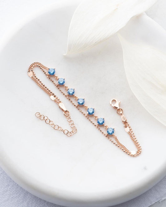 Aquamarine Round Brilliant Cut Signity Diamond Prong Set Bracelet For Women | Everyday Jewelry Bracelet | Elegant Design Bracelet