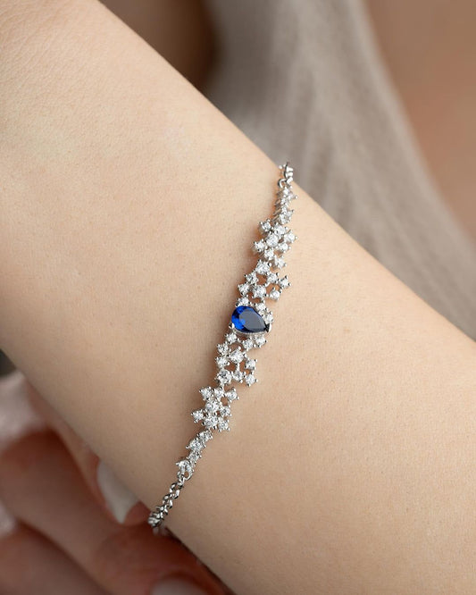 Blue Pear Brilliant Cut Signity Diamond Solitaire Bracelet For Women | Designer Bracelet For Her | Women Jewelry