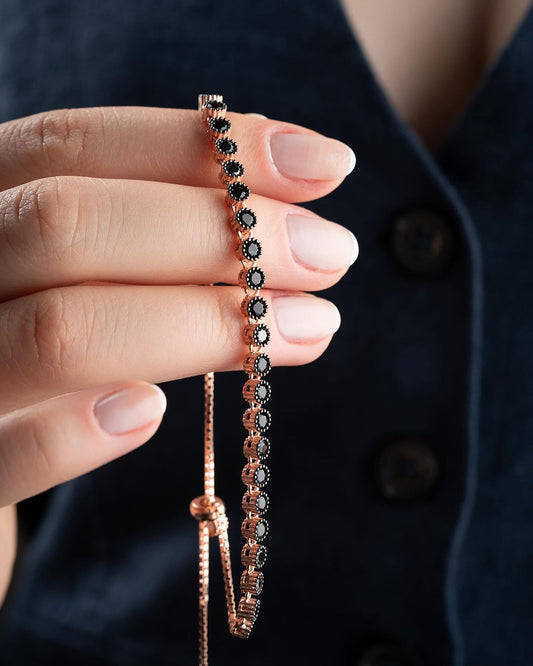 Black Round Brilliant Cut Prong Set Signity Diamond Adjustable Bracelet For Women | Daily Wear Adjustable Bracelet | Jewelry Collection