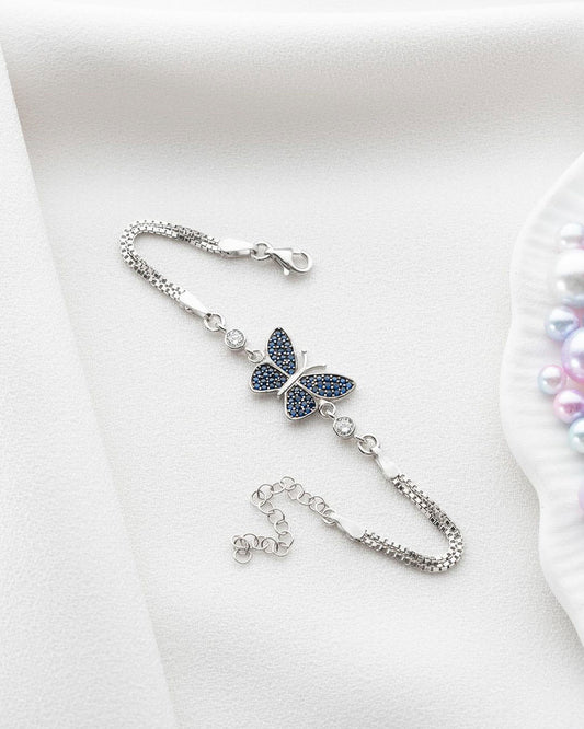 Butterfly Blue Round Brilliant Cut Signity Diamond Cluster Bracelet For Women | Box Chain Bracelet For Her | Fancy Bracelet For Teenage Girl