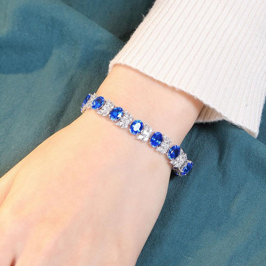 Blue Oval And White Pear And Marquise Brilliant Cut Signity Diamond Solitaire With Cluster Tennis Bracelet For Women | Party Wear Tennis Bracelet | Beautiful Designer Bracelet