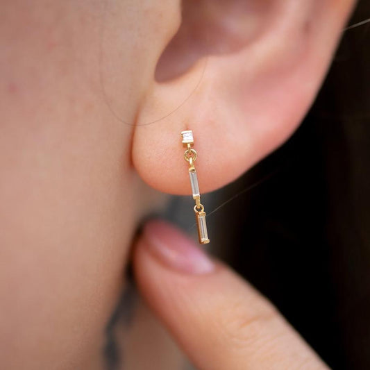 White Baguette Cut Cubic Zirconia Bar Set Double Drop Earring For Women | Minimalist Earring For Her | Promise Gift Drop Earring For Girlfriend
