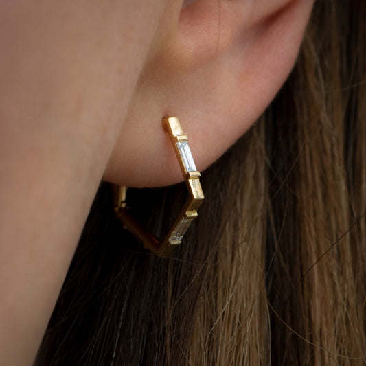 White Baguette Cut Cubic Zirconia Bar Set Hoop Earring For Girl | Birthday Gift Earring For Her | Everyday Wear Jewelry For Women