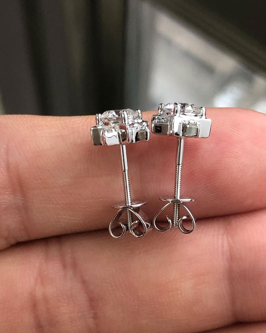 White Round Cut Cubic Zirconia Three Stone Stud Earring For Her | Engagement Promise Gift Earring For Fiancee | Customize Gift For Women