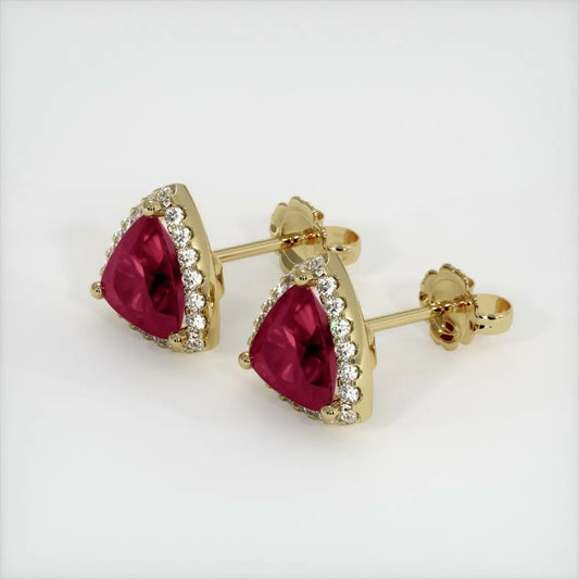 Red Trillion Cut Cubic Zirconia Halo Stud Earring For Her | Everyday Wear Earring For Women | Personalized Gift Earring