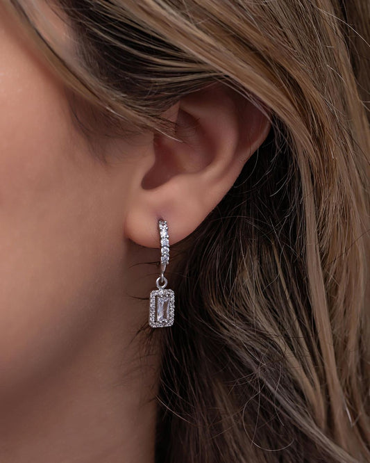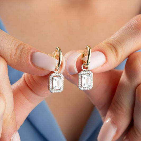 White Baguette Cut Cubic Zirconia Halo Setting Drop Earring For Her | Hoop Earring For Women | Stylish Earring Gift For Ladies