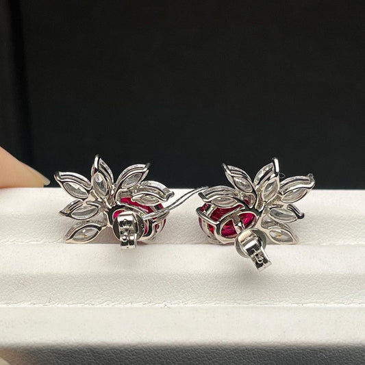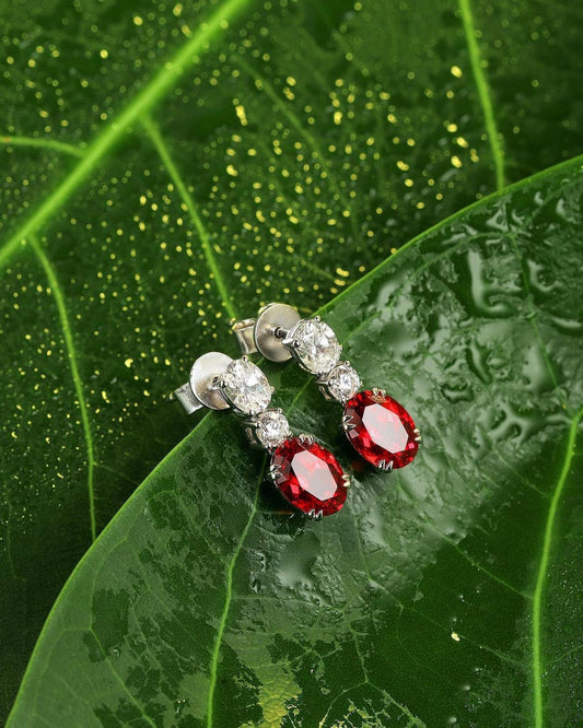 Red Oval Cut Cubic Zirconia Solitaire With Cluster Earring For Her | Engagement Bride Gift | Women Jewelry Collection