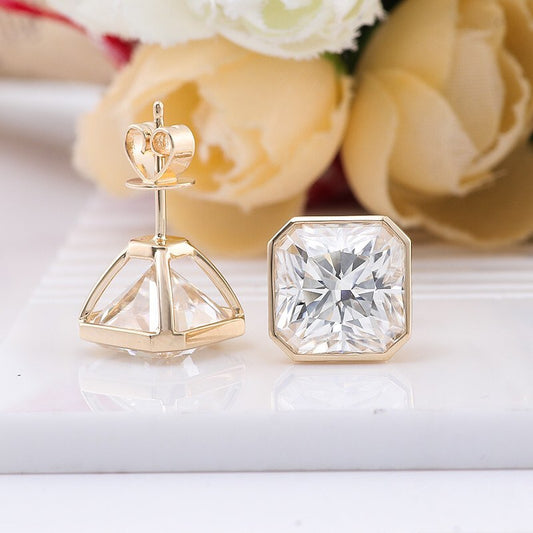 White Radiant Cut Cubic Zirconia Bezel Stud Earrings For Her | Ice Crushed Stud Earring | Engagement Gift Stud Earring For Fiancee