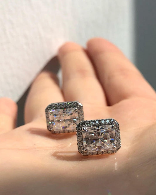 White Radiant Cut Cubic Zirconia Halo Stud Earrings For Women | Wedding Earring For Bridal | Perfect Occasion Gift For Her