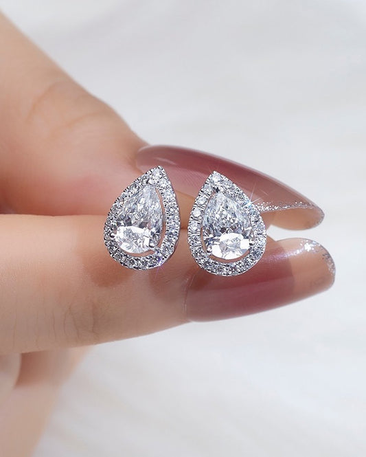 White Pear Cut Cubic Zirconia Halo Stud Earrings | Bridesmaid Gift Earring | Unique Design Earring For Women