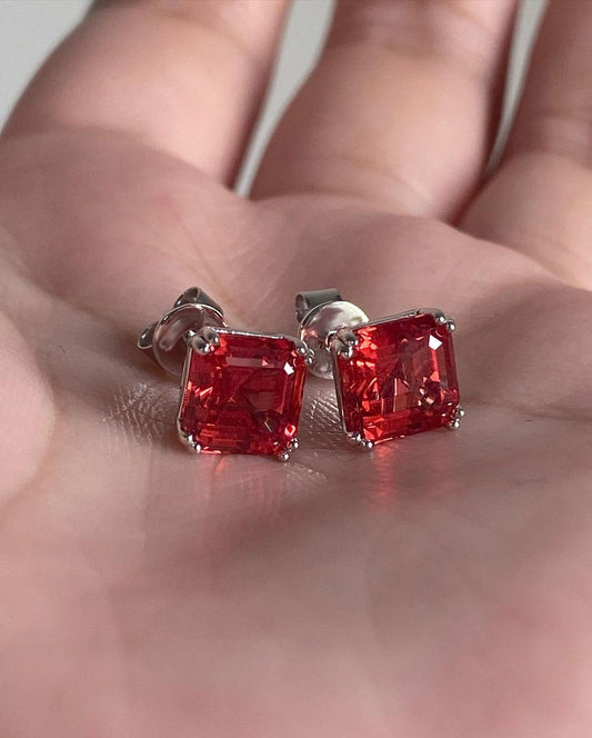Red Asscher Cut Cubic Zirconia Solitaire Stud Earrings For Women | Birthstone Gift Earring For Her | Beautiful Earring For Ladies