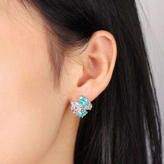 Aquamarine Oval And White Pear And Marquise Cut Cubic Zirconia Cluster Earrings | Perfect Special Occasion Gift Earring | Women Jewelry Collection