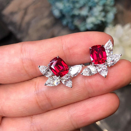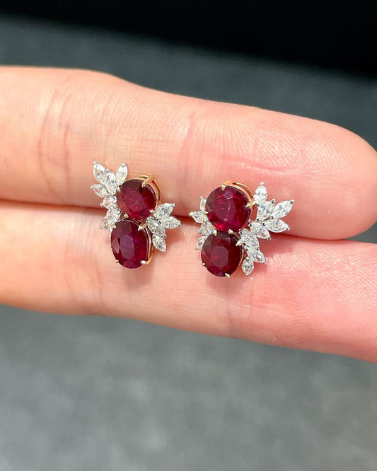 Red Oval And Round Cut Cubic Zirconia Two Stone With Cluster Earrings For Her | Thank You Gift Earring For Ladies | Elegance Design Earring