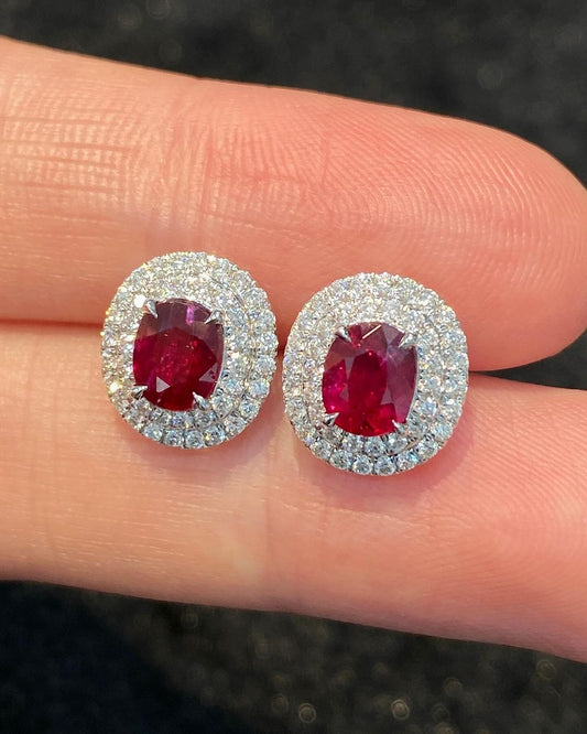 Red Oval Cut Cubic Zirconia Double Halo Earrings For Women | Perfect Occasion Gift Earring For Ladies | Bride To Be Earring