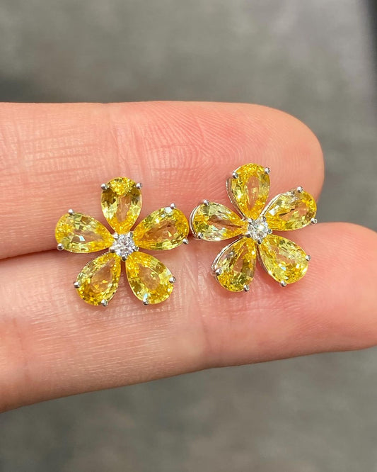Canary Yellow Pear Cut Cubic Zirconia Cluster Earrings | Flower Shape Earring For Women | Anniversary Gift Earring For Wife