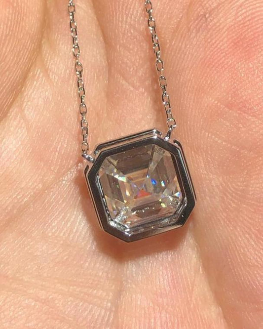 2.88Ct White Asscher Cut Halo Pendant | Engagement Gift Pendant | Special Gift Pendant For Her | Jewelry Collection