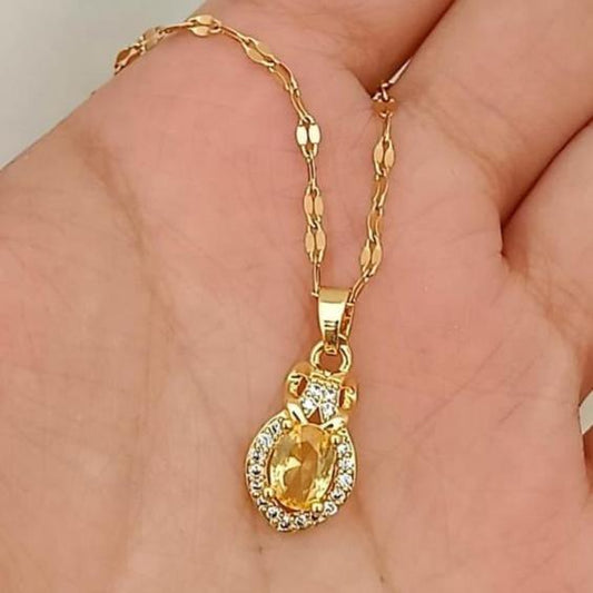 2.77Ct Yellow Oval Cut Solitaire With Halo Pendant | Engagement Gift Pendant For Fiancée | Birthstone Pendant For Women | Thank You Gift Pendant | Timeless Design