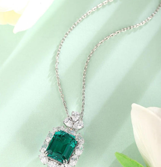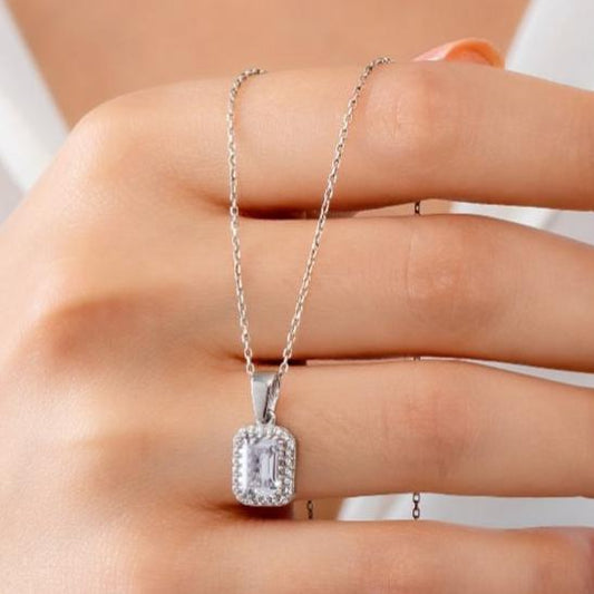 2.80Ct White Emerald Cut Halo Pendant | Birthday Gift Pendant | Statement Pendant For Her | Women Jewelry Collection