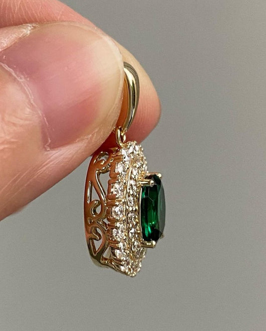 3.10Ct Green Oval Cut Double Halo Pendant | Wedding Gift Pendant For Bridal | Modern Style Pendant | Luxury Jewelry For Women