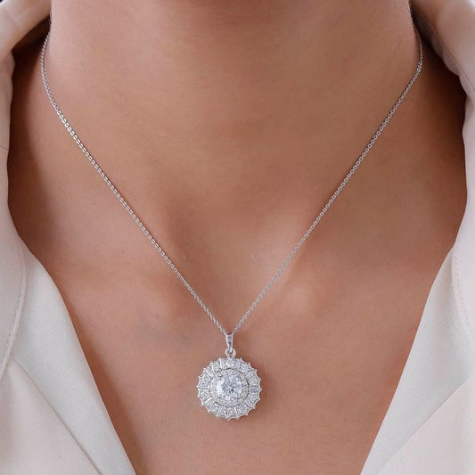2.50Ct White Round Cut Solitaire With Cluster Pendant | Party Wear Pendant | Elegant Jewelry Piece | Bride To Be | Fashion Jewelry