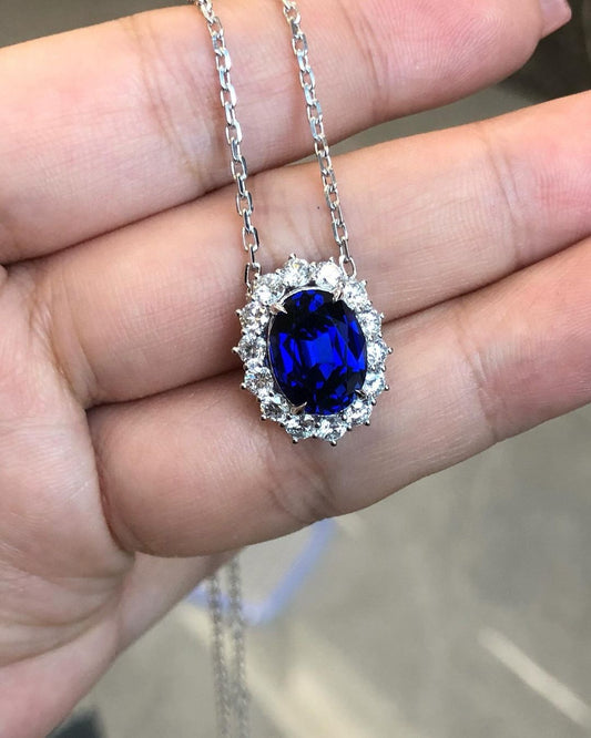 3.10Ct Blue Oval Cut Halo Pendant | Wedding Gift Pendant | Birthstone Pendant | Fashion Jewelry