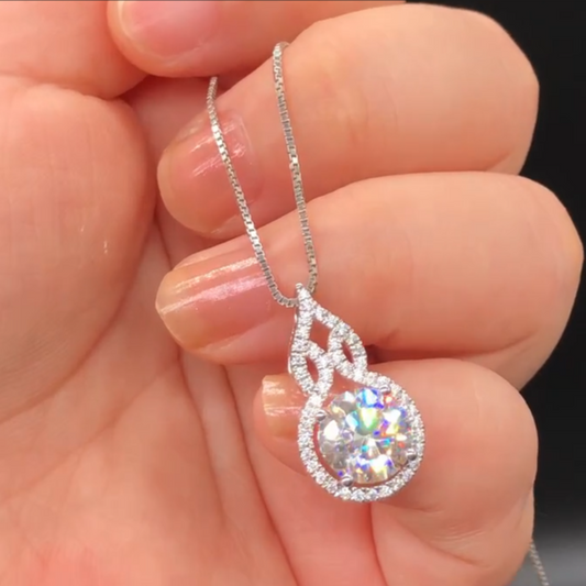 2.80Ct White Round Cut Solitaire With Halo Pendant | Party Wear Pendant | High Quality Pendant | Luxury Jewelry | Designer Jewelry Piece