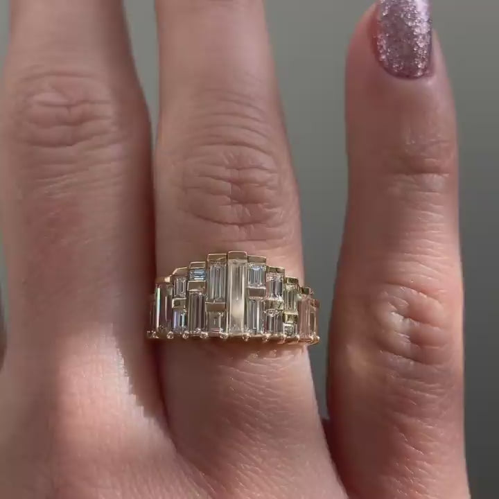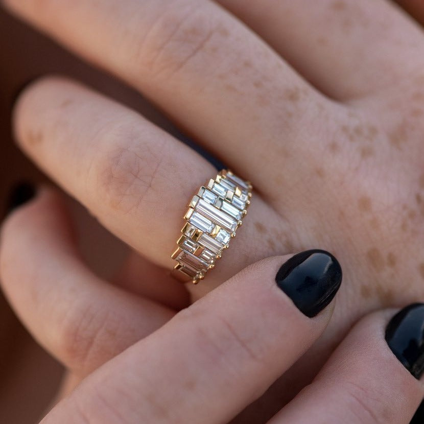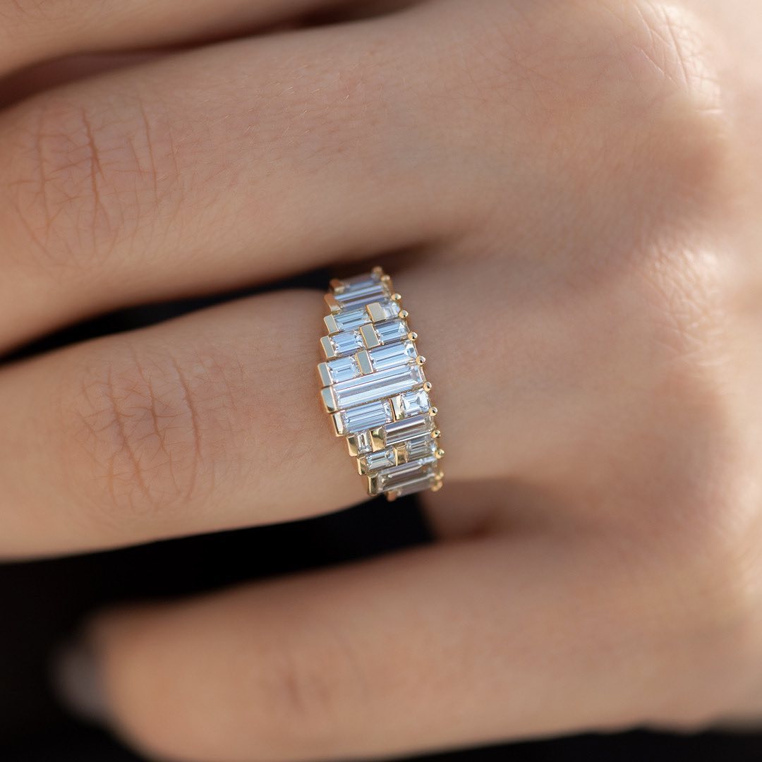 Introducing our exquisite 1.6Ct White Baguette Cut Bar Set And Prong Ring, a unique anniversary gift for your wife. Crafted with premium cubic zirconia, this elegant ring features a dazzling combination of baguette-cut stones set in a bar and prong setting, radiating sophistication and charm.